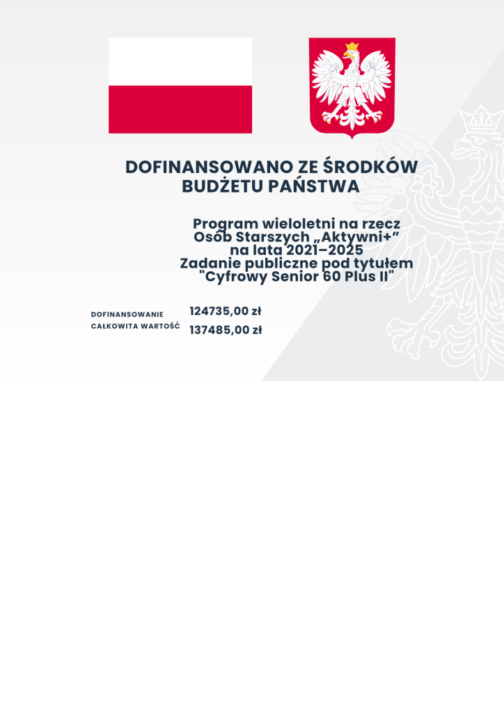 Udział w projekcie jest BEZPŁATNY. Senior nie ponosi żadnych kosztów.