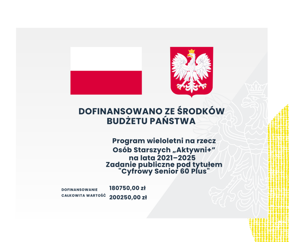 Udział w projekcie jest BEZPŁATNY. Senior nie ponosi żadnych kosztów.